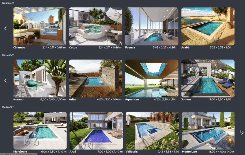 A organização do conteúdo foi refeita com foco em escalabilidade. Isso significa manter a estrutura funcional mesmo com o aumento constante da variedade de piscinas. Um sistema escalável não compromete a clareza da interface quando novos produtos são adicionados.