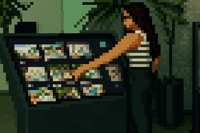 A navegação vertical tornava difícil explorar o portfólio crescente da iGUi em telas grandes. Este redesign reorganizou a arquitetura da informação e repensou a interação para reduzir esforço físico, tornar a navegação mais fluida e permitir o uso do totem em diferentes contextos, como lojas e feiras.